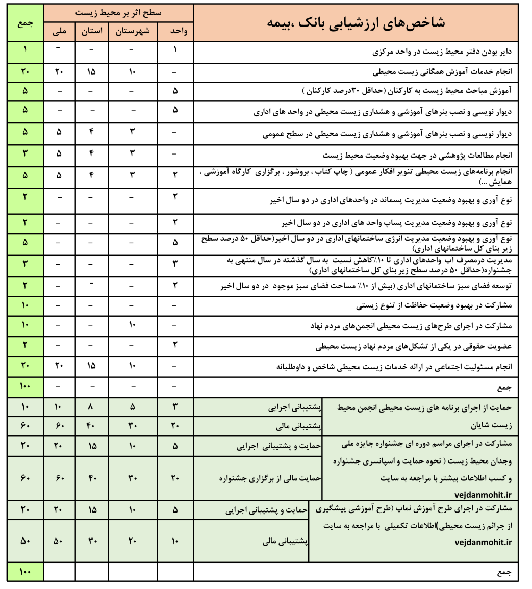 · کمک به برند سازی زیست محیطی اشخاص و ترغیب آنان به انجام خدمات داوطلبانه زیست محیطی
