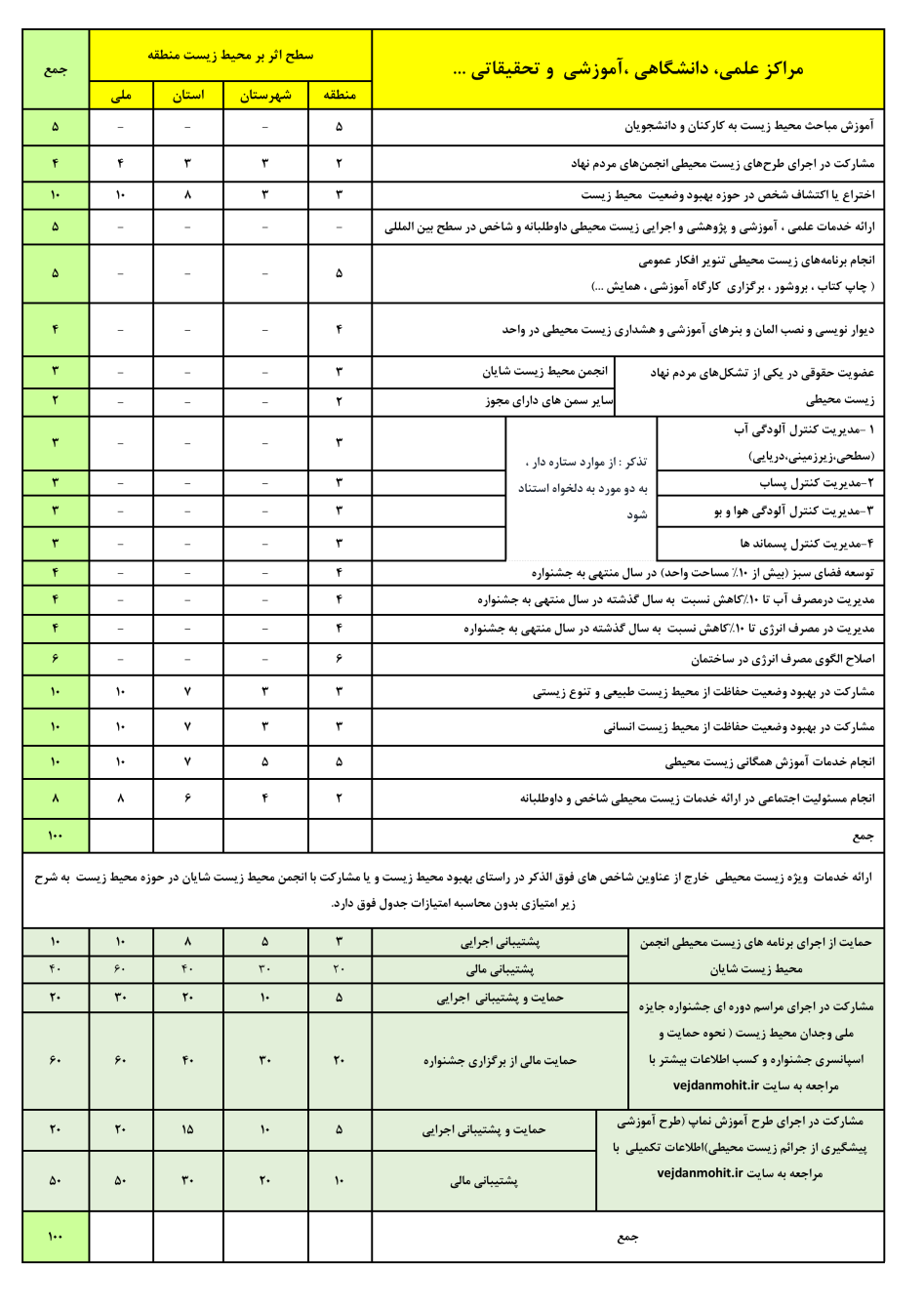 10- سایر فعالیت های مشاوره ای ، فرهنگی ،اقتصادی،اجتماعی، تجاری ، علمی،پژوهشی،آموزشی و غیره در حوزه محیط زیست